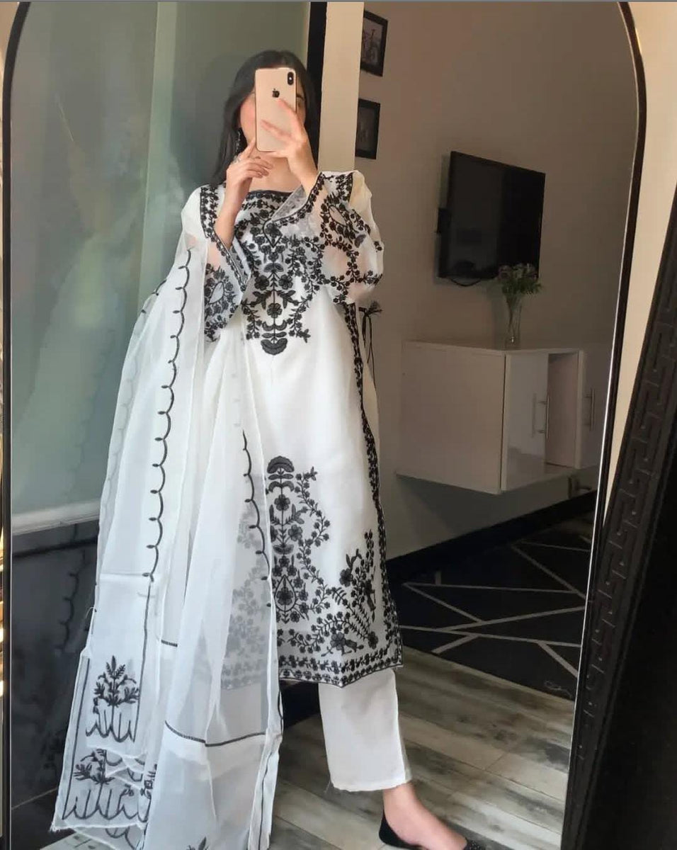 Neck,Sleeves,Daman Embroidered Shirt With Fully Embroidered Dupatta 3Pcs